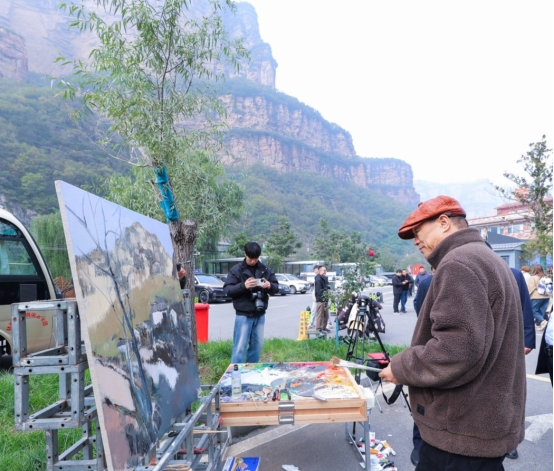 行动现场聚集了一批写生的高校师生,他们在山水之间支起画架,以青春的笔触描绘着眼前的巍巍太行,构成了一幅“人在画中,画在景中”的动人图景。