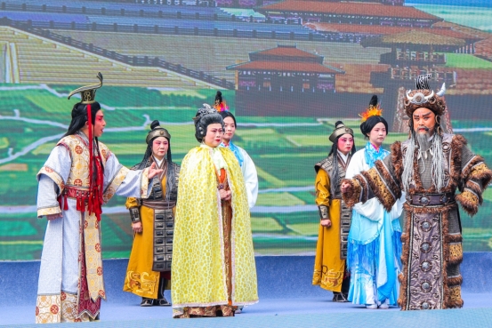 在沉浸式推介环节,一曲深情婉转的《来不来我都在林州等你》,唱出了林州人民的热情与期盼;殷墟博物馆的《妇好大婚》表演,带领观众穿越千年,感受殷商文明的辉煌气象;安阳县带来的豫剧《盘庚迁殷》,以高亢的唱腔展现殷商大地的古老故事;汤阴县则以《山河梦萦》表演,在光影间展示中华儿女守护山河的壮志。