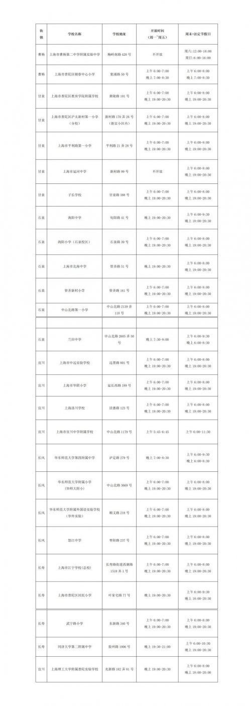 目前普陀区(东片区域)体育场地开放的学校消息如下: