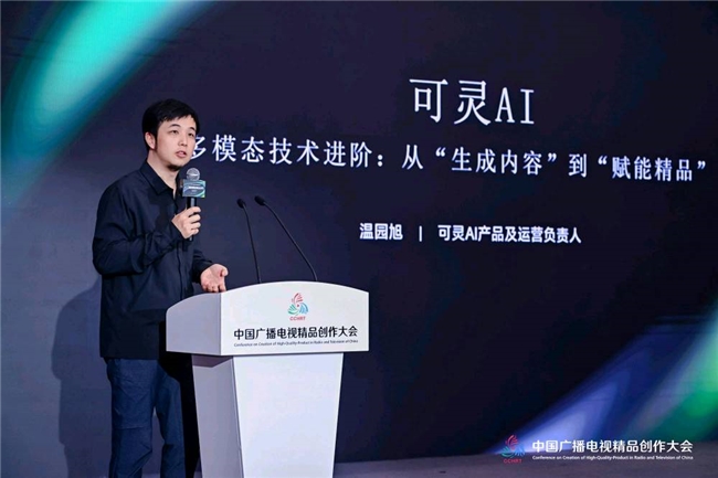 可灵AI产品及运作负责人温园旭分享了技术的进展路径与产业实践。他表示,从“生成内涵”到“赋能精品”,可灵AI经过持久深耕多模态技术,正逐步构建起覆盖广告、影视、游戏、文旅等领域的AI创作生态。